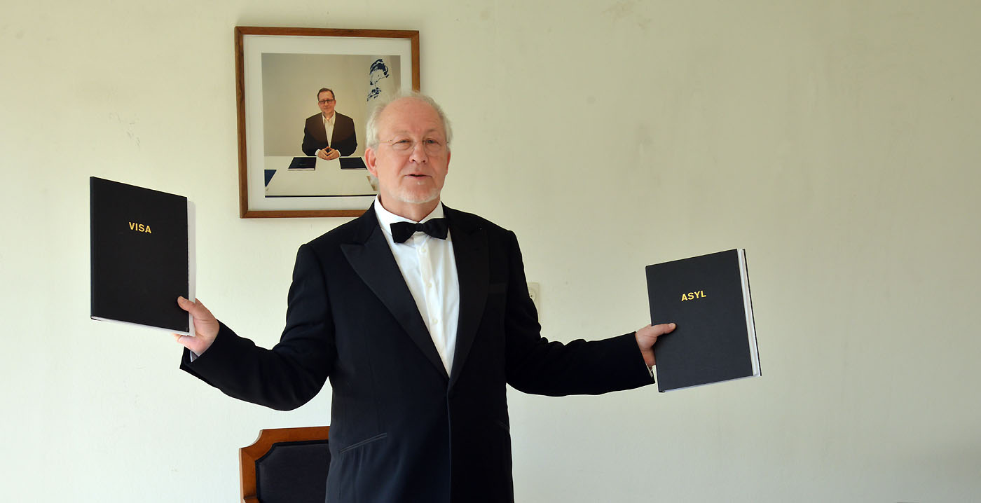 S. E. Peter Kees, der Botschafter von Arkadien, eröffnete am Samstag, 27. September, eine Dependance im Künstlerhaus Ganslberg. Für den arkadischen Botschafter S.E. Peter Kees ist der mythische Ort Arkadien die Möglichkeit, sich mit aktuellen Problemen unserer Zeit auseinanderzusetzen.